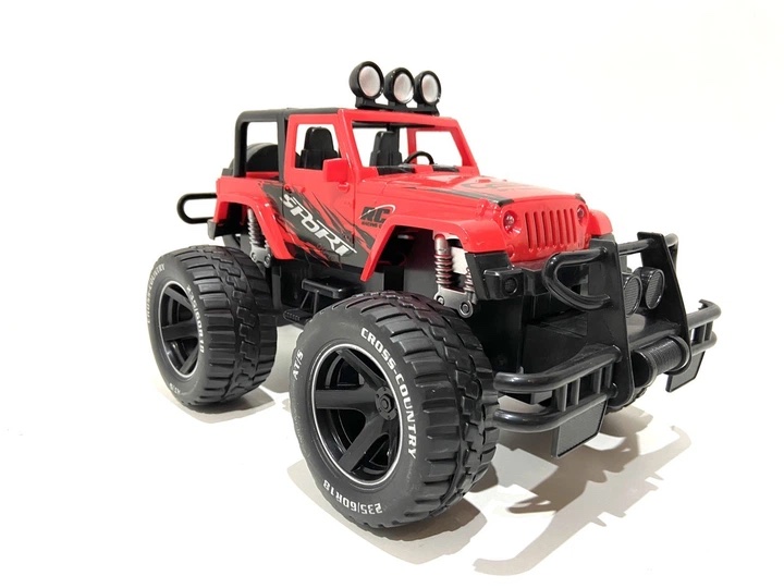 Реалистичный дизайн вездеходного автомобиля. Движение вперед/назад, вправо/влево. Яркая белая подсветка передних фар при движении вперед. Резиновые колеса с фактурными узорами.