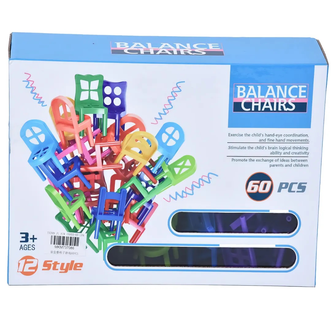 Стульчики – очень популярная игра на ловкость! Игрокам необходимо построить башню из стульчиков таким образом, чтобы конструкция не упала. Цель игры – первым избавиться от своих стульев. Стульчики можно соединять друг с другом любой стороной: ставить друг на друга, боком, вверх ногами и т.д. Если в ход игрока конструкция из стульчиков развалилась – игрок забирает себе все упавшие стульчики. В набор входит уникальный золотой стульчик – он дает игроку право один раз отдать два упавших стульчика своему соседу. Игра очень веселая и азартная, развивает ловкость и координацию. Количество игроков: 2-4.