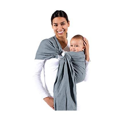 Трикотажный слинг с кольцами. Нарядный, мягкий, удобный. Цвет: Серый Возраст от 0 до 6-ти месяцев