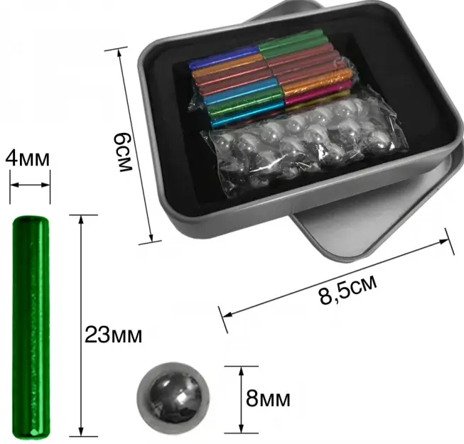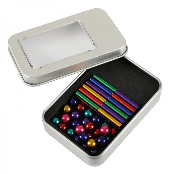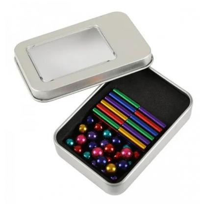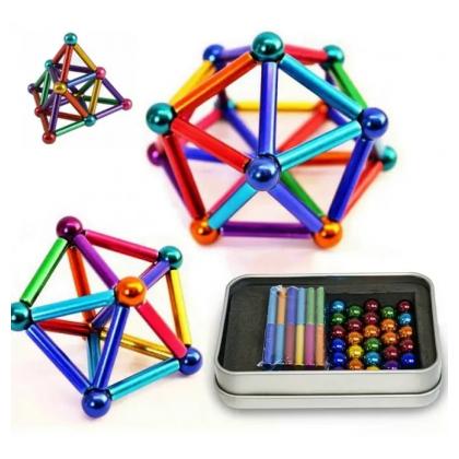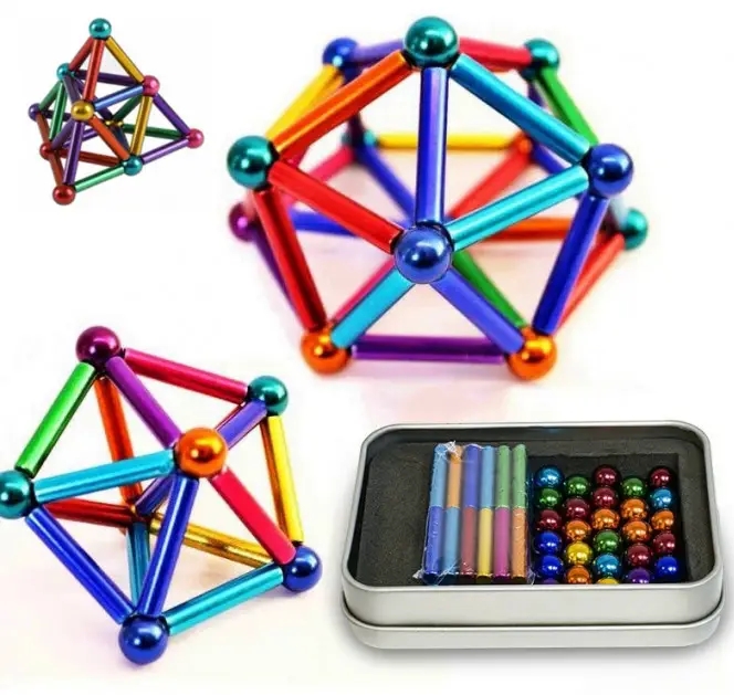 Imaginea prezintă un set de construcție magnetic, cunoscut și sub numele de NeoCube sau bile magnetice cu bețe.