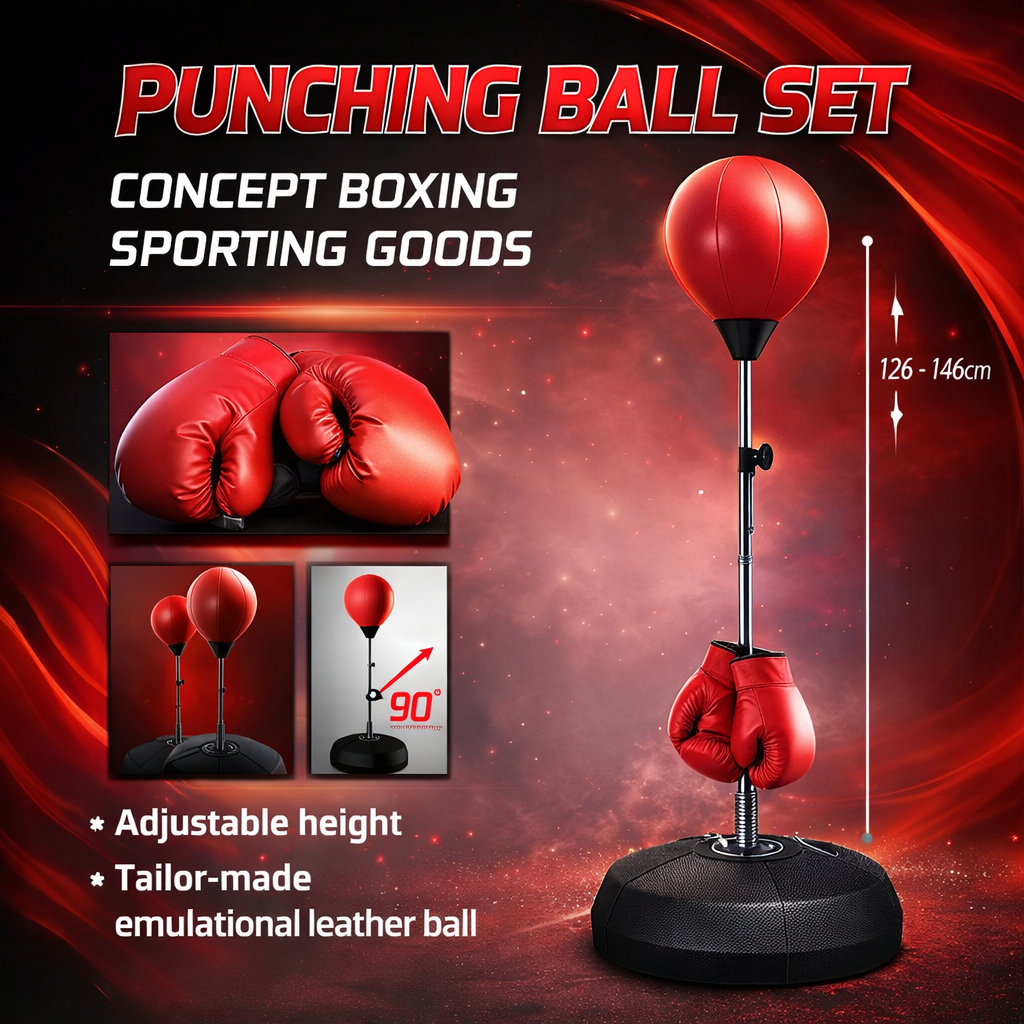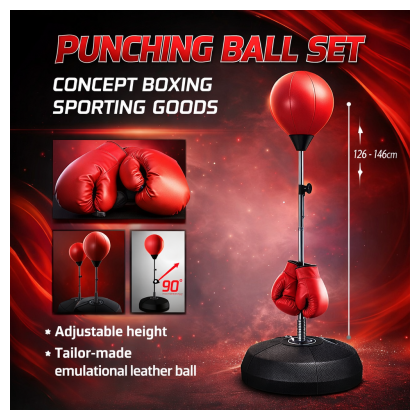 Предмет на изображении — это боксерский набор Hong Zhe Punching Ball Set (номер модели 8312). Регулируемая высота стойки от 126 до 146 см.