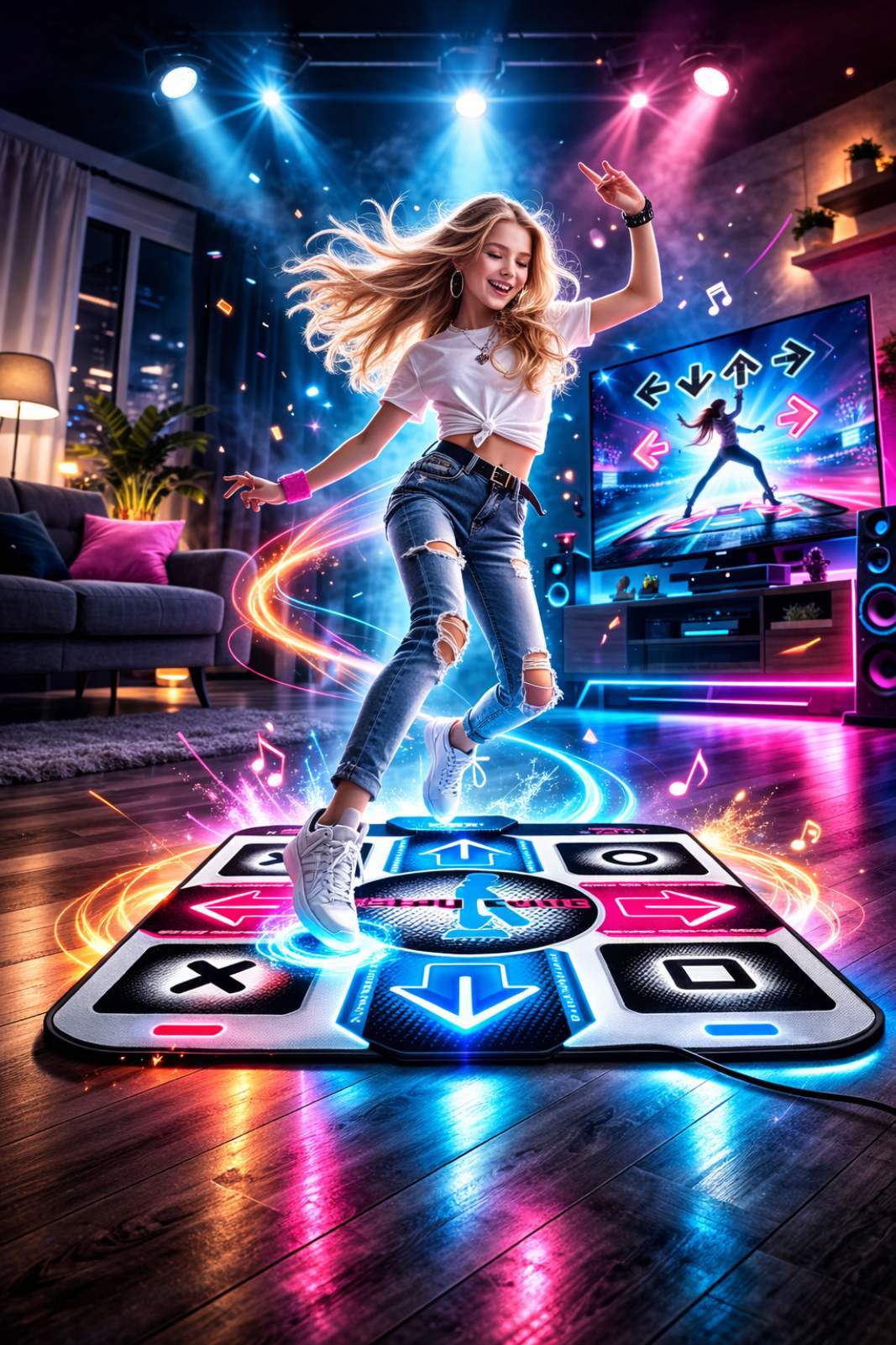 -Танцевальный коврик можно подключить к телевизору или компьютеру и он отлично развивает ловкость и координацию движений. Немного тренировки и ваш ребенок будет лучшим танцором двора, а ненавистная утренняя зарядка превратится в любимую игру.