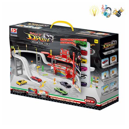 Это игровой набор для парковки автомобилей с функциями звука и света. Название: Scene Rail Car RALLY DRIVE № 59973. Особенности: красочные огни, музыка, реалистичная симуляция сцены, возможность создания собственной тематики. Возраст: 3+ года.
