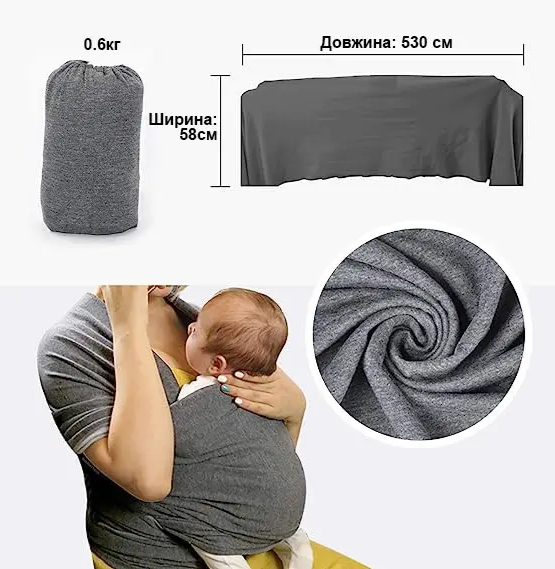 Слинг-шарф длина 5 метров. ширина 60 см трикотаж придает шарфам прекрасную поддержку , практичен в любую погоду. 100% Хлопок удобный мешочек для упаковки слинга Возраст от 0 до 6-ти месяцев