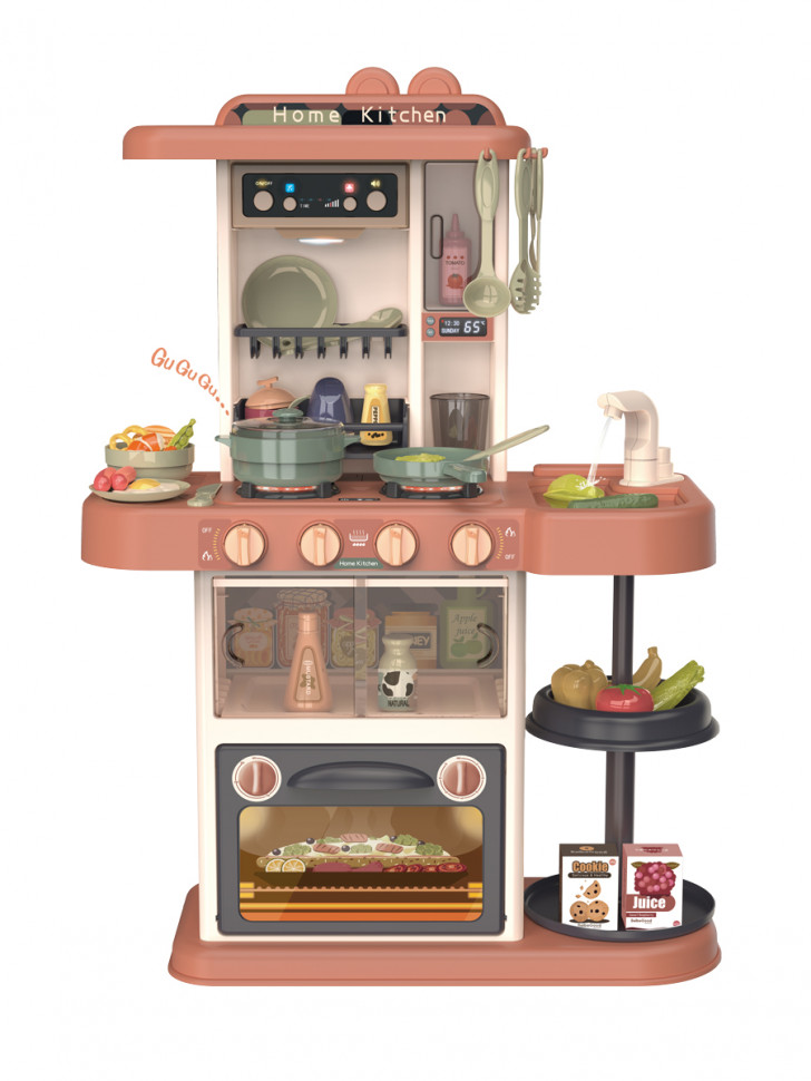 Выполнен он из пластика высокого качества (без запаха). Выполнена кухня в нежных тонах и с эффектами, холодильником и возможностью использования настоящей воды.